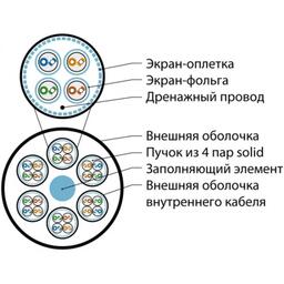 Кабель витая пара SSTP (S/FTP), категория 7 (1000 MHz), 24 пары (23 AWG), одножильный (solid), PVC, SSTP24-C7-SOLID-INDOOR-CMR-BL-305