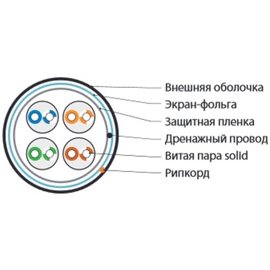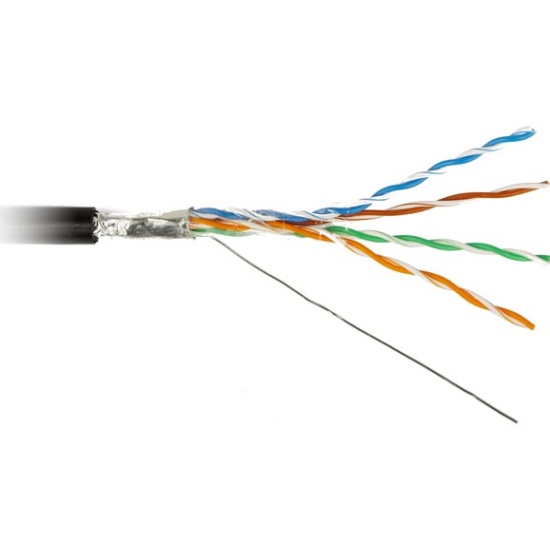 Кабель витая пара Hyperline FTP, 4 пары, Кат. 5e, внешний, черный, 100м в кат., FUTP4-C5E-S24-OUT-PE-BK-100