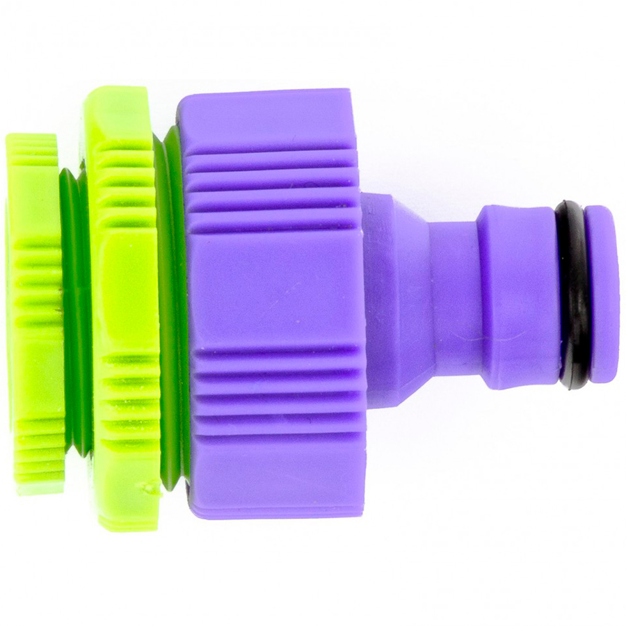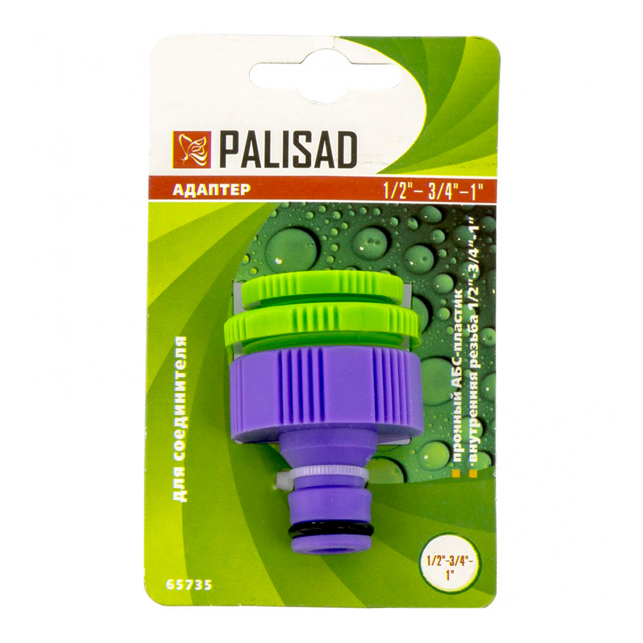 Адаптер изготовлен из ударопрочной ABS-пластмассы. Комплектуется двумя переходниками, позволяющими присоединять поливочную систему к кранам диаметрами 1 2” - 3 4” - 1”, с другой стороны адаптера – штуцер (быстросъемное соединение). Штуцерный выход адаптера совместим со всеми элементами поливочной системы PALISAD.