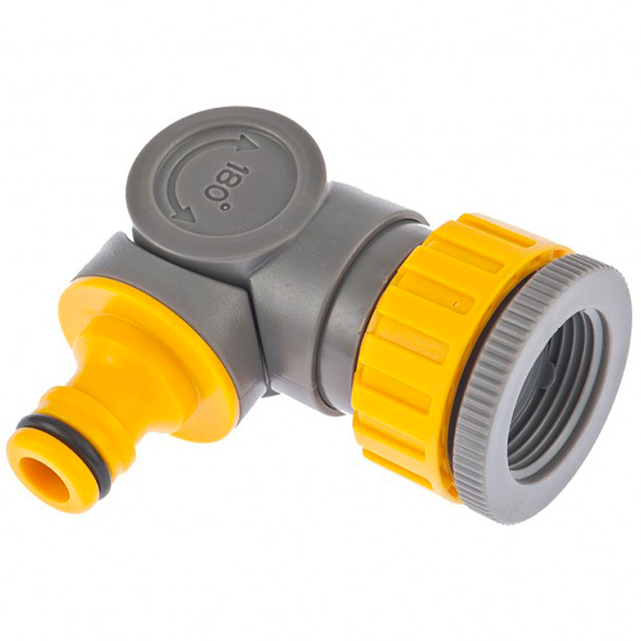 Предназначен для использования в качестве переходника между резьбовым соединением (например,краном) и быстросъемным соединителем.Шарнирный механизм позволяет менять направление соединений на 180°, защищая шланг от перегибов и перекручивания.