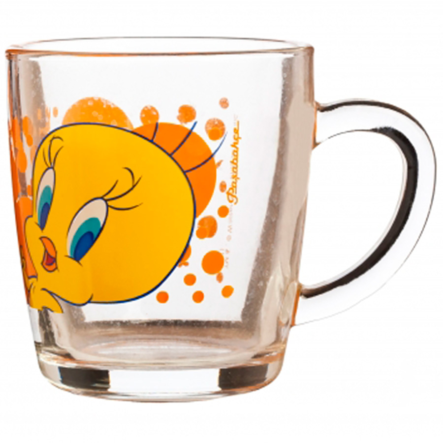 Детская кружка Твити из стекла объемом 350 мл - отличный подарок для вашего ребенка! Подходит для холодных и горячих напитков, а так же пригодна для мытья в посудомоечной машине.