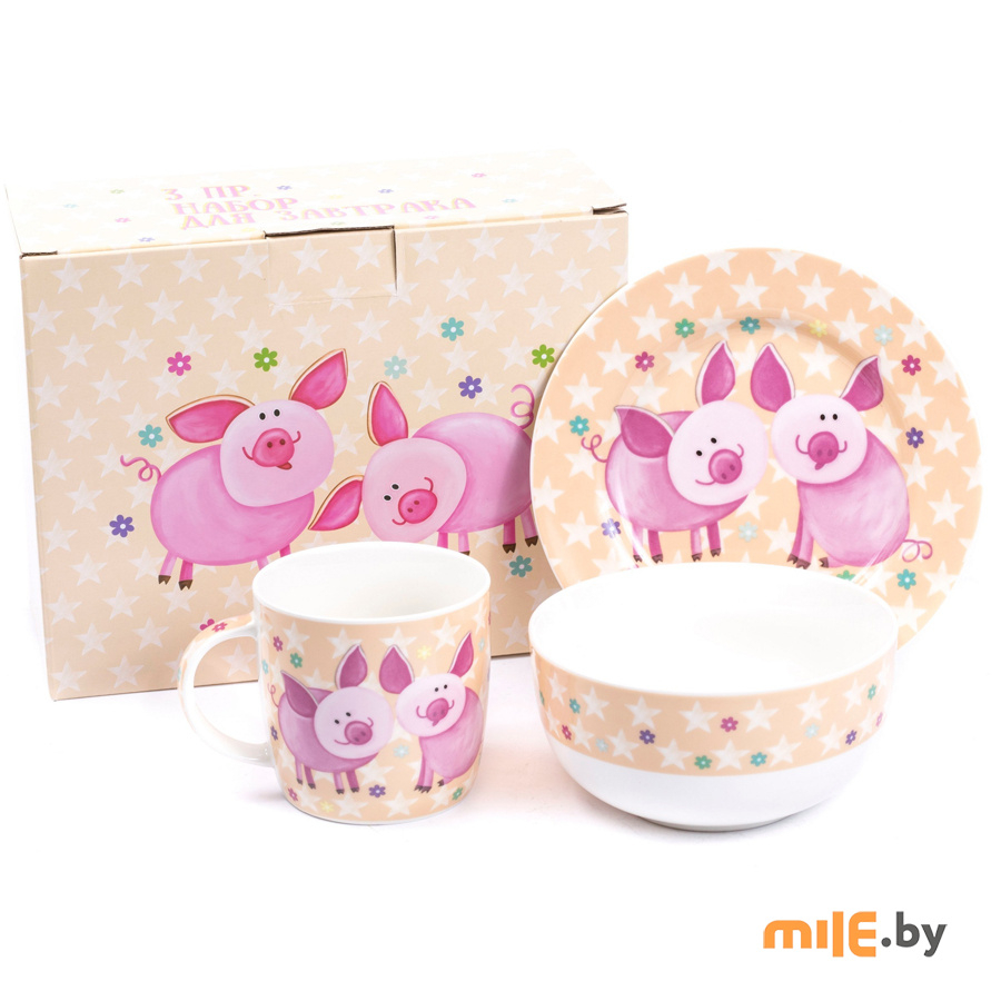 Набор для завтрака фарфоровый детский Свинки (3 пр.) Тарелка 17 см Салатник 13 см Кружка 280 мл (GD7697B-1 165841)