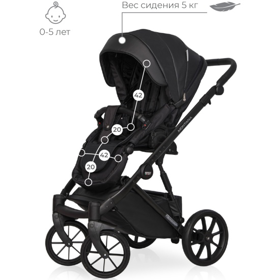 Не только роскошная, но и практичная, ведь материал коляски и сумки - эко-кожа.Плюсы люльки:полное закрытие крохи от непогодынастоящий кокосовый матрасиклегкий съемнакидка на молнии (с удобным бегунком), а значит ее не унесет ветром, если понадобится переложить кроху на улицесъемные хлопковые чехлы внутри так же на молнии, что очень удобно, ведь их придется часто вынимать для стиркиспециальная система вентиляции прямо в дне люльки для знойных днейПлюсы прогулочного блока:ветрозащитный отворот, фиксируемый на магниткомпактное и легкое складывание вместе с блокомустанавливается лицом к маме/лицом к мирувнутри блок полностью закрыт - не бойтесь, что кроху продуетвторая подножка - когда малыш подрастет, то сможет садиться в коляску самостоятельно4 положения спинки, включая горизонтальноебольшое вентиляционное окно в капюшонеВас приятно удивят:дождевик, москитная сетка, невероятно стильная сумка - в комплектебесшумный капюшонтормоз, не пачкающий обувьрегулируемая подвеска, в том числе режим спорт (можно кататься на роликах или бегать вместе с коляской)закрытая корзина с жестким дном, чтобы не провисали продуктымакс. нагрузка на корзину: 3 кг.Технические данные:ширина колёсной базы (см) 59диаметр передних колес (см) 23диаметр задних колёс (см) 28высота от пола до ручки (см) 105пружинная амортизация 2-х колес и коленчатая амортизация 2-х колесразмер спального места (см) 77x34x20