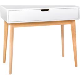 Стол письменный Nikko станет украшением вашего дома. Ножки столика выполнены из массива натурального дерева. Столешница, износостойкая, выполнена из ЛДСП в белом цвете.