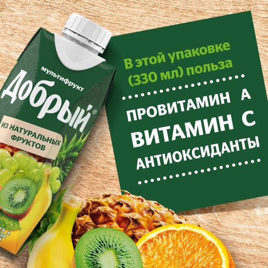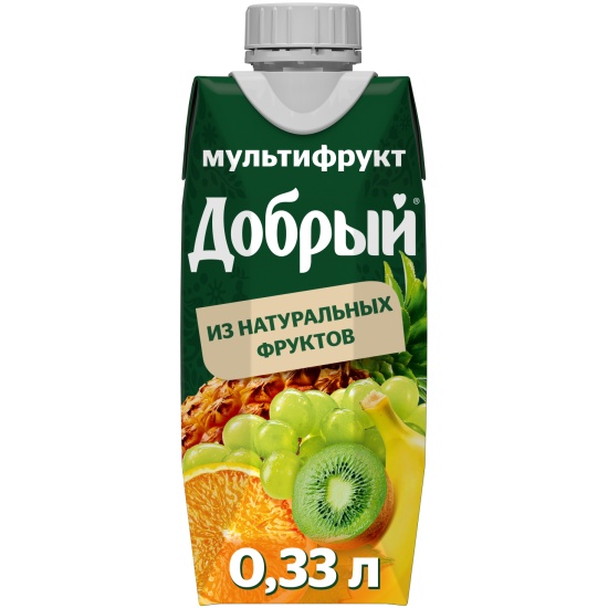Добрый Мультифрут 0,33л (24 штуки в упаковке)Добрый Мультифрукт нектар без консервантов и красителей в удобной упаковке для потребления на ходу.
