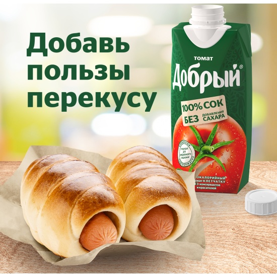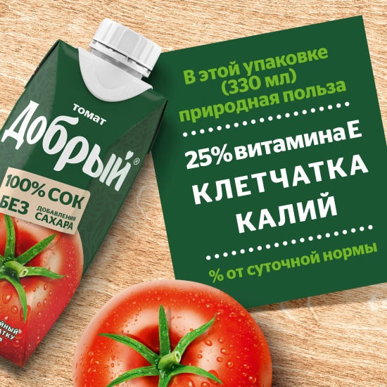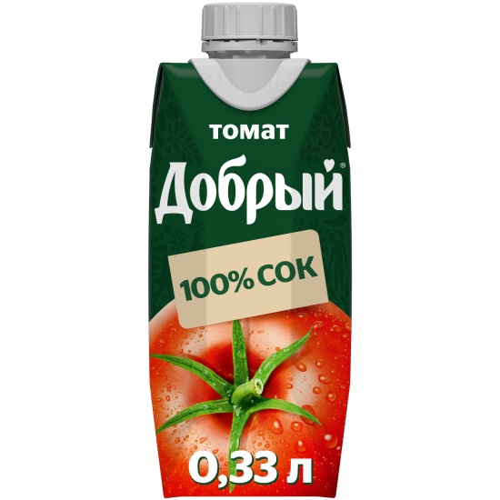 Сок Добрый Томат 0,33л (24 штуки в упаковке)Добрый Томат 100% сок без добавления сахара, без консервантов и красителей в удобной упаковке для потребления на ходу.