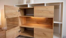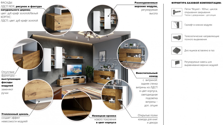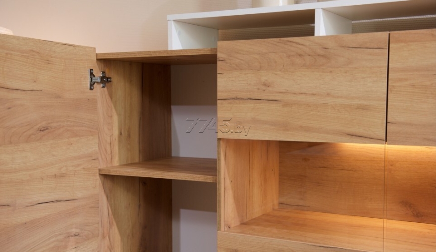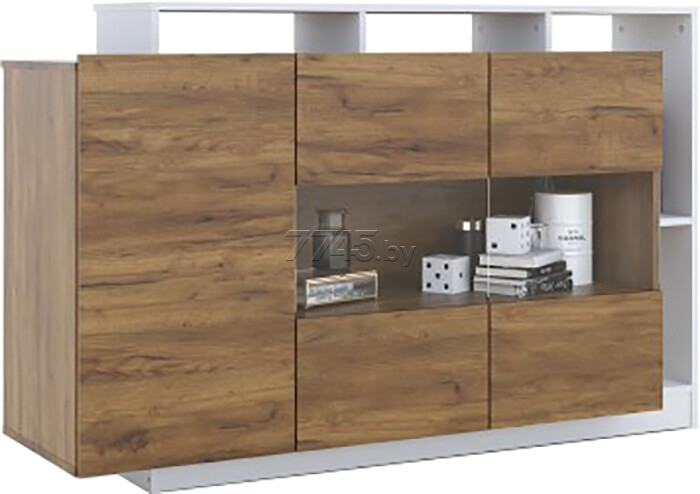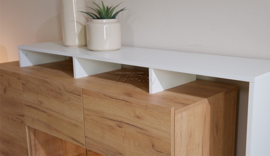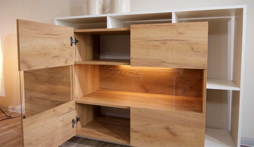 Комод ИМПЕРИАЛ Невио-2 1д2в дуб крафт золотой/белый 155х45х96 см обладает целым рядом преимуществ. Благодаря оригинальным открытым и закрытым полкам, отсутствию лицевой фурнитуры создает ощущение легкости и невесомости. Высота фасадов увеличена на 1 см для удобства открывания. С помощью витрины из прозрачного стекла вы можете украсить свой дом милыми сердцу вещами и сделать на них акцент с помощью светодиодной подсветки (не входит в комплект поставки). Задняя стенка витрины выполнена из ЛДСП в цвет корпуса, поэтому не будет отвлекать на себя внимание от наполнения витрины. Мебель выполнена из высококачественных экологичных материалов.