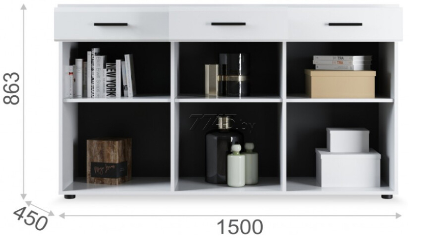 Комод ИМПЕРИАЛ Йорк 3д3ящ белый жемчуг/белый глянец 150х45х86,3 см выполнен в современном стиле. Белые глянцевые фасады МДФ зрительно увеличивают пространство, добавляют света в комнату. Вместительные полки и ящики на телескопических направляющих полного выдвижения помогут грамотно организовать пространство, на комод можно поставить фото, вазу с цветами или украсить гостиную другими милыми вещами. Мебель смотрится красиво со всех сторон, так как для сборки используется скрытая фурнитура. Изделие выполнено из экологически безопасных материалов.