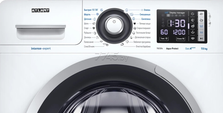 Стиральная машина АТЛАНТ СМА 75C1214-01 имеет уникальный дизайн, который прекрасно дополнит любой интерьер своим внешним видом. С помощью новых сенсорных технологий достаточно легкого касания для выбора функций и программ. Светодиодные индикаторы и сегментный дисплей машины размещены на панели управления под небольшим углом, что облегчает визуальное восприятие отображаемой информации о работе машины. Благодаря интеллектуальным программам она не только интуитивно понятна в управлении, но и обеспечивает превосходные результаты стирки при низком потреблении воды и электроэнергии.18 программ: Очистка барабана, Смешанные, Слив/Отжим, Любимая программа, Постельное белье, Стирка покрывал, Деликатная стирка, Быстрая 15/30 минут, Хлопок, Синтетика, Шерсть, Шелк, Спорт, Полоскание, Рубашки, Джинсы, Детская, Темные вещи.