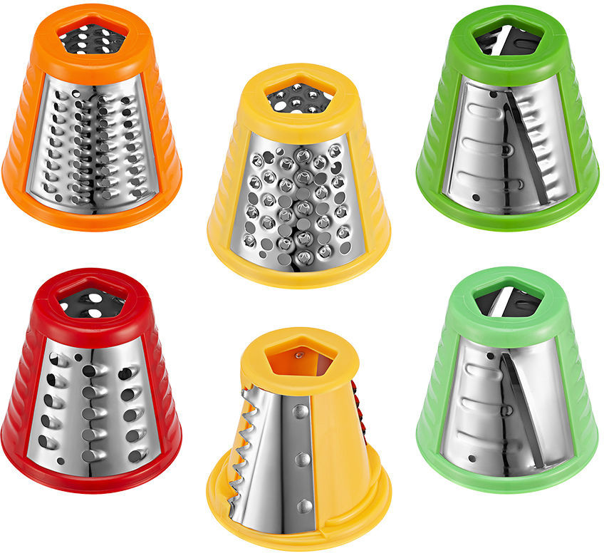 • Ножи и насадки Диск для картофеля-фри; Диски для шинковки; Нарезка ломтиками; Тёрка; Тёрка для драников