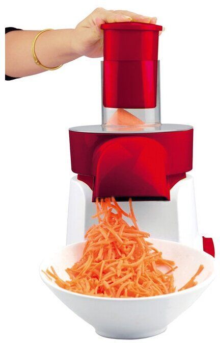 Мощность 250 Вт, количество скоростей 1, в комплекте: диск для картофеля-фри, тёрка, диски для шинковки, нарезка ломтиками.