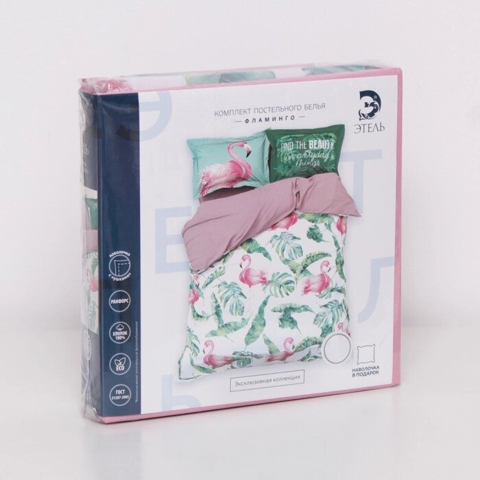 Постельное бельё "Этель" евро Фламинго 200х217 см, 220х240 см, 50х70+3 см - 2 шт