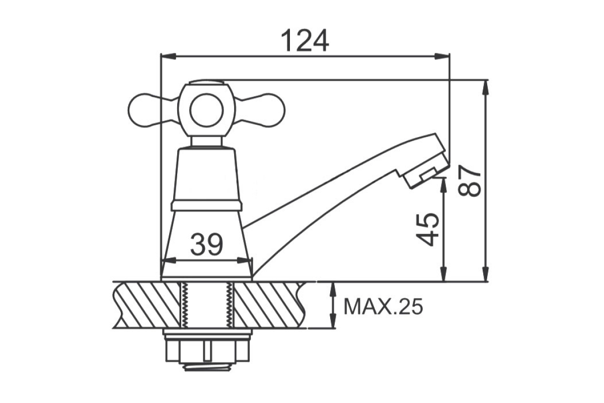 • Диаметр отверстия в раковине, мм 39