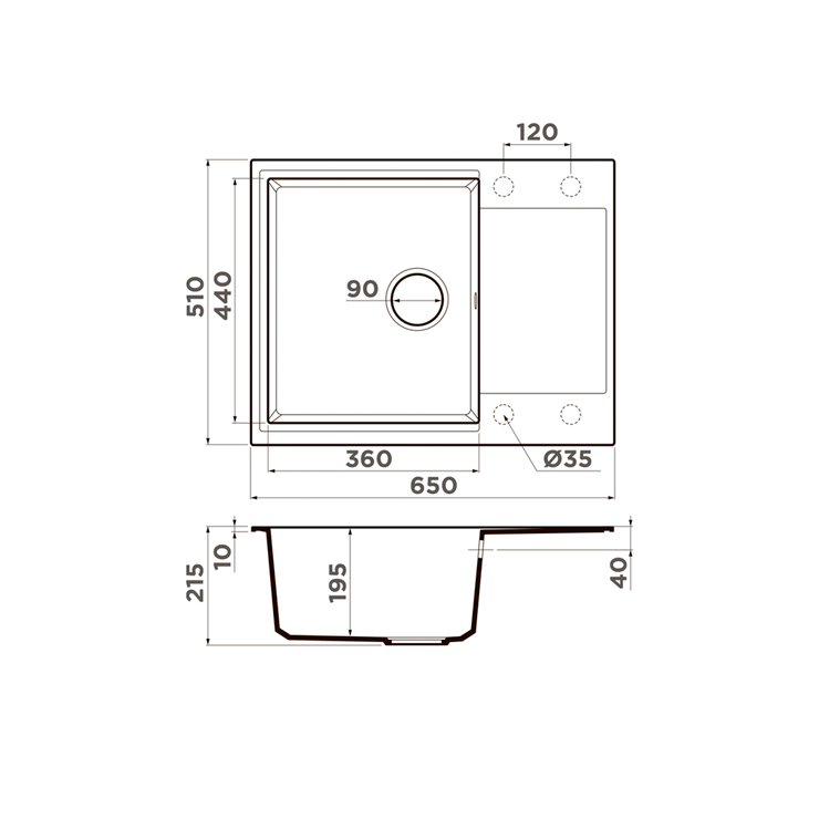 - Форма мойки прямоугольная