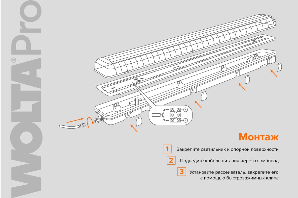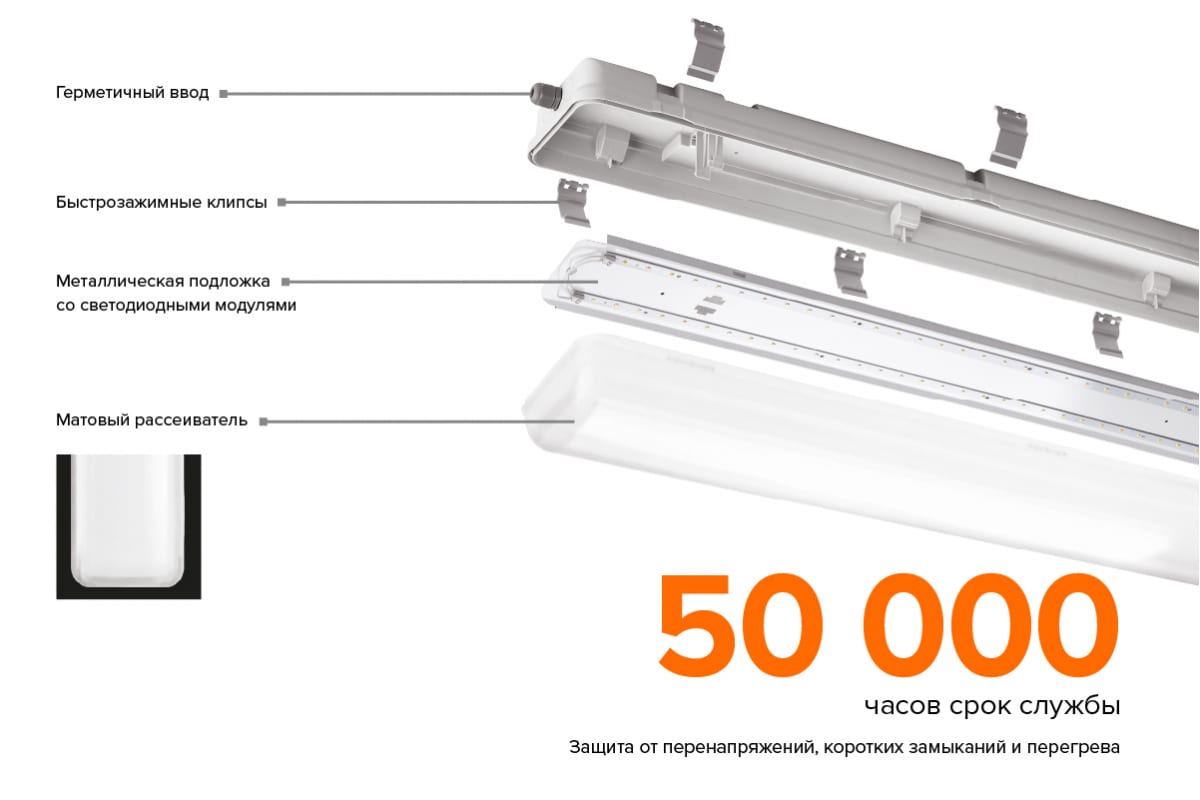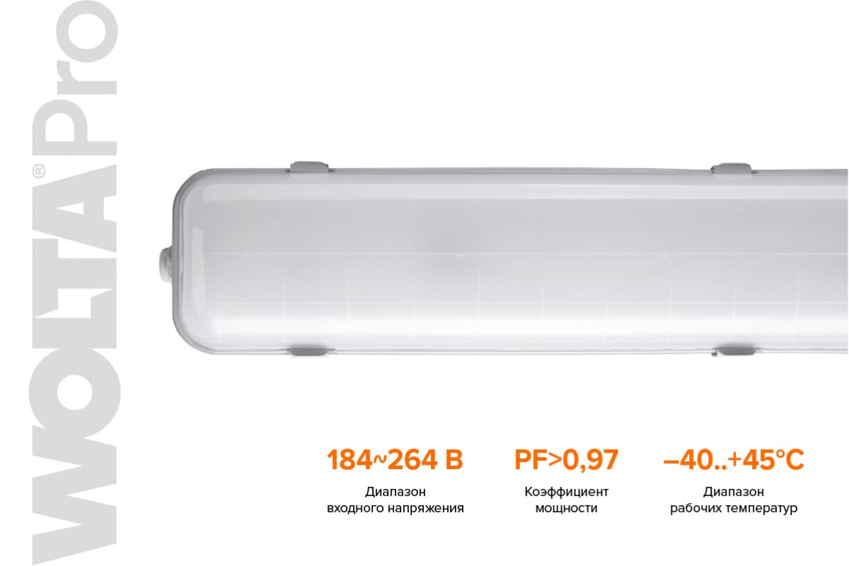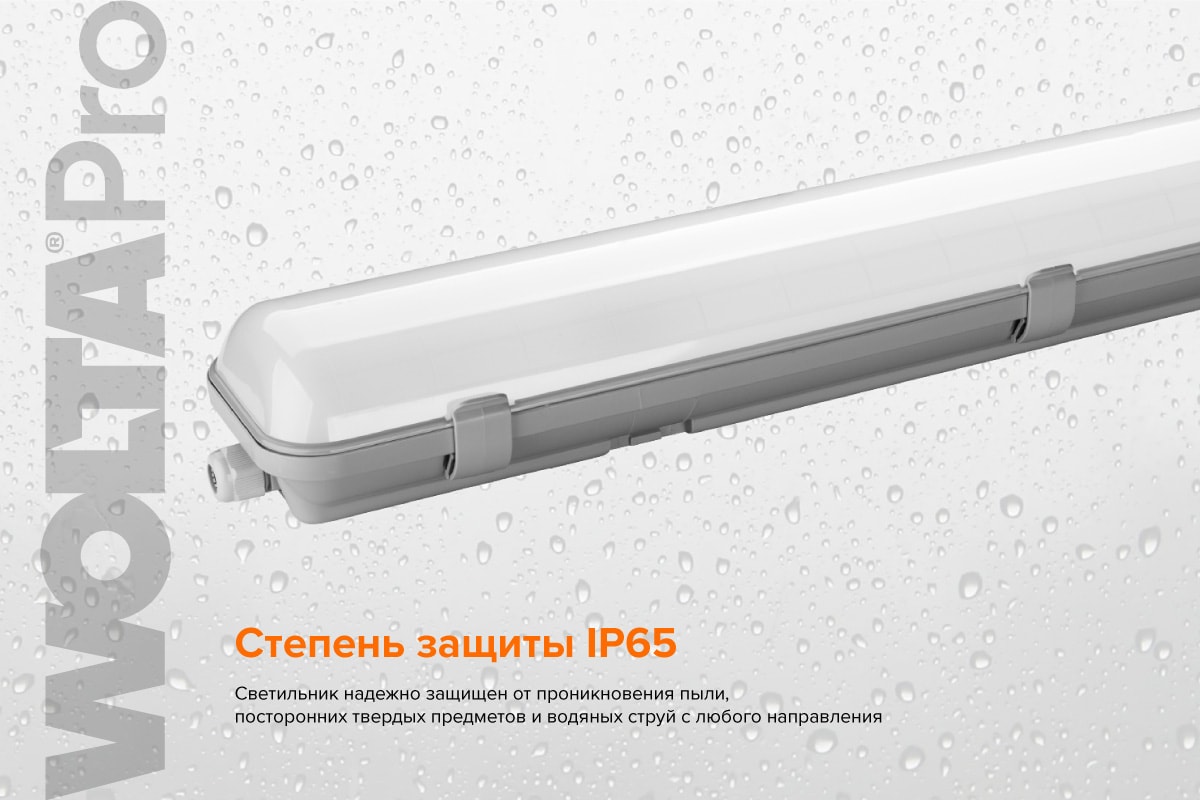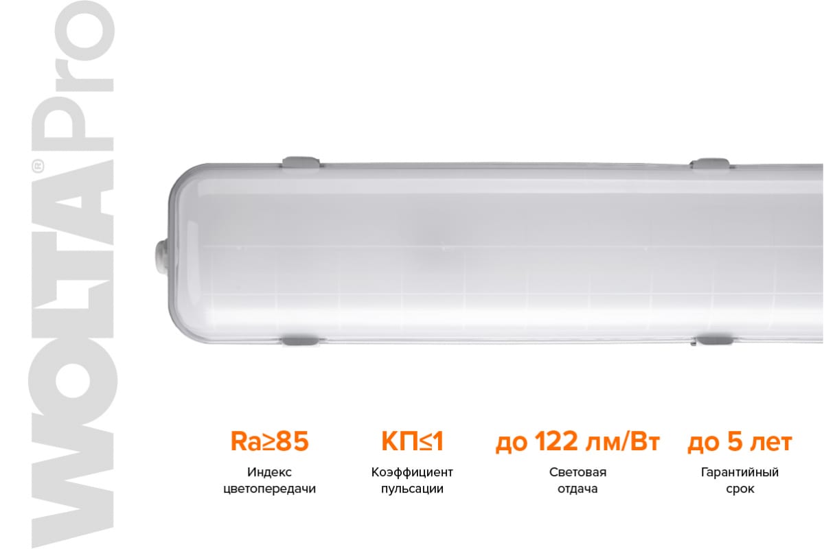 Светильник Wolta PRO Ультра Матовый ПРОМ ДСП04-36-001-5К используется для помещений с высокими требованиями к пылевлагозащите. Светильник имеет модификацию с БАП на 1 и 3 часа.