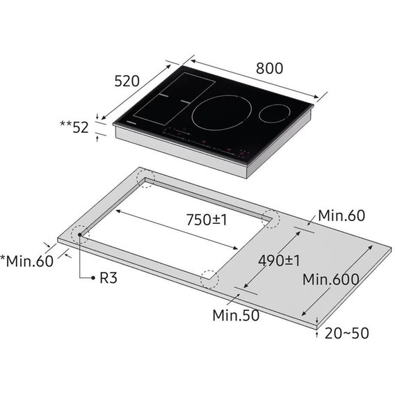 • Размеры для встраивания 6.6х75х49 см