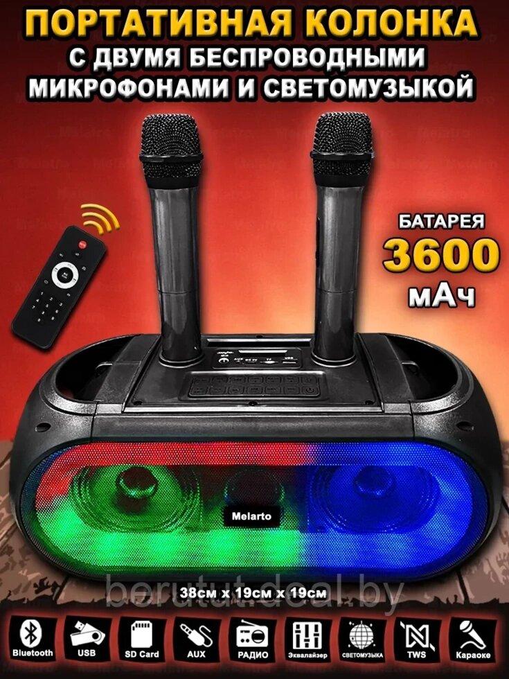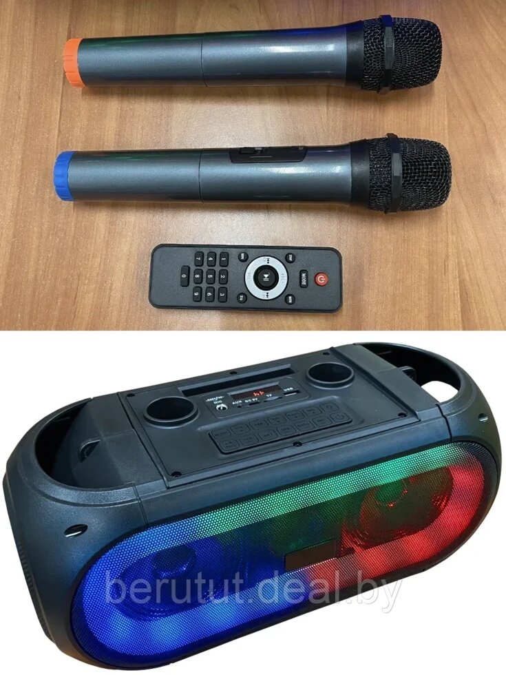 Портативная Bluetooth колонка караоке ZQS 4247 с двумя беспроводными микрофонами FM USB TF Type-C