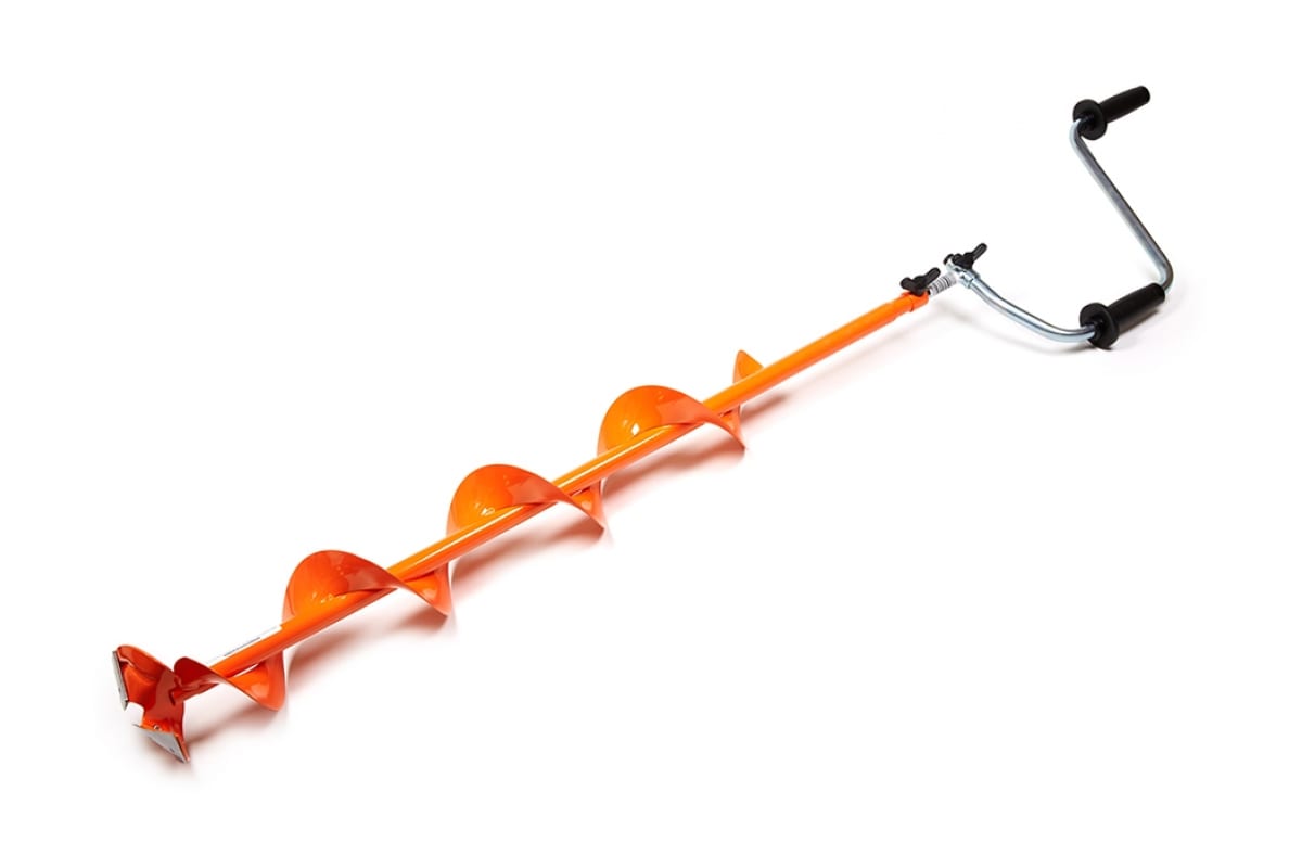 Большее количество витков на шнеке позволяет бурить быстрее, а телескопическая ручка помогает увеличить глубину бурения льда.