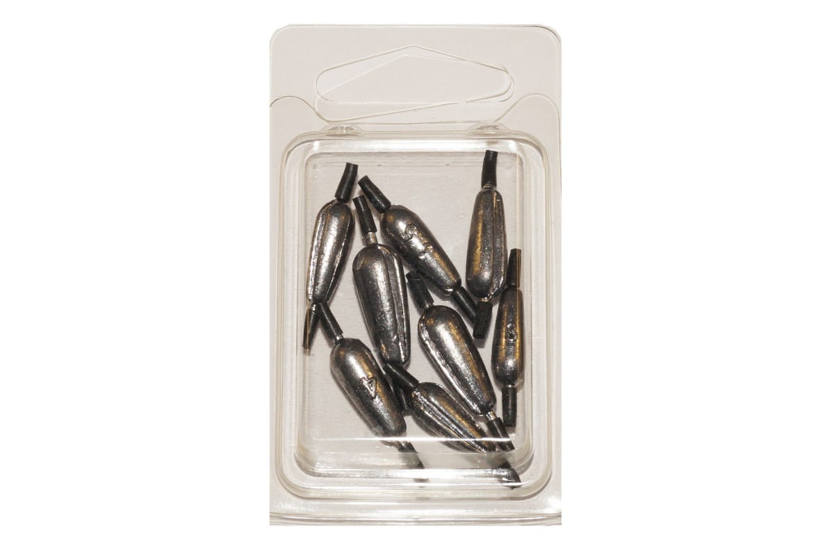 Для монтажа необходимо вставить грузик нужного веса штырьками в кембрики, находящиеся на леске.