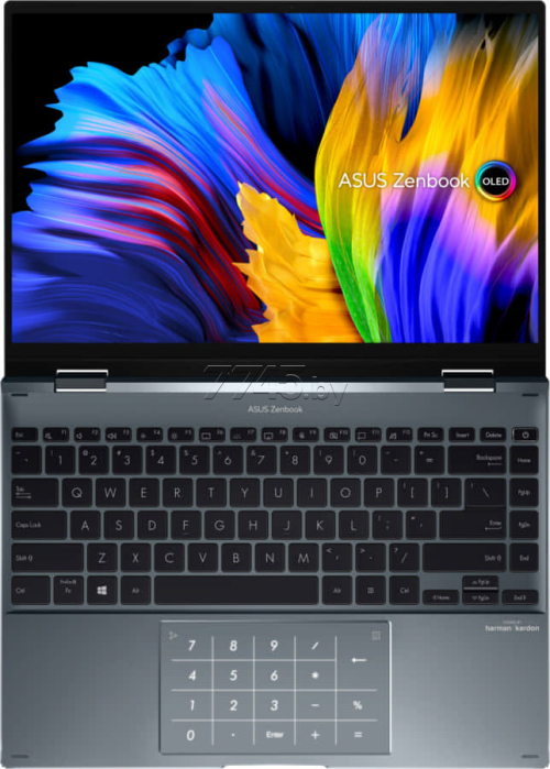 Ноутбук ASUS Zenbook 14 Flip OLED UP5401EA-KN076 – изящный, легкий, компактный ультрабук-трансформер, работающий на базе новейшего процессора Intel Core 11-го поколения с графическим ядром Intel Iris Xe. Любой контент выглядит на ноутбуке Zenbook 14 Flip OLED более реалистичным, ведь он оснащается великолепным сенсорным OLED-дисплеем с исчезающе тонкой рамкой и разрешением до 4K1,2. Благодаря увеличенному формату (16:10) пользователь получает больше рабочего пространства по сравнению со стандартными экранами с соотношением сторон 16:9. Дисплей также может похвастать точной цветопередачей, подтвержденной сертификатом Pantone Validated, кинематографическим цветовым охватом (100% DCI-P3) и расширенным динамическим диапазоном (технология HDR). Время отклика OLED-дисплея ASUS составляет рекордные 0,2 мс – в 50 раз лучше, чем результат обычных ноутбучных ЖК-дисплеев.Zenbook 14 Flip OLED прекрасно подходит и для серьезной работы, и для развлечений. Благодаря новейшему процессору Intel Core i5-1135G7 со встроенным графическим ядром Iris Xe и большому объему оперативной памяти (16 ГБ), этот ноутбук легко справляется с любыми задачами. В его современную аппаратную конфигурацию также входят скоростной твердотельный накопитель, работающий в режиме PCIe 4.0 x4, и беспроводной модуль Intel Wi-Fi 6. Высокоэффективная система охлаждения IceCool Plus поддерживает три режима работы вентиляторов, которые можно выбирать через приложение MyASUS. Zenbook 14 Flip OLED весит всего 1,4 кг, а толщина его корпуса составляет 15,9 мм. Такое устройство поместится практически в любую сумку и не станет обузой в дороге.В ноутбуке Zenbook 14 Flip OLED реализовано множество полезных дополнений, которые делают жизнь пользователя комфортнее. Например, раскрывающийся на 360° экранный шарнир может превратить ноутбук в планшет, тачпад NumberPad 2.0 может работать в режиме цифровой клавиатуры, а для быстрой разблокировки устройства служит сканер отпечатков пальцев, встроенный в кнопку питания. ZenBook 14 Flip OLED предлагает пользователю современный комплект интерфейсов, включающий порты HDMI и USB 3.2 Gen2 Type-A. Особо стоит отметить наличие интерфейса Thunderbolt 4, представленного сразу двумя разъемами USB-C. Они поддерживают вывод видеосигнала на внешние мониторы формата 4K и передачу данных на скорости до 40 Гбит/с. Для карт памяти имеется кард-ридер формата microSD, а для подключения звукового оборудования – удобный комбинированный аудиоразъем.Zenbook 14 Flip OLED поставляется с новейшей версией программного центра MyASUS, включающего в себя коллекцию различных приложений и утилит, которые помогут извлечь максимум из этого ноутбука. В приложении MyASUS имеется функция ClearVoice Mic, которая способна отфильтровывать фоновые шумы при звукозаписи, а в режиме Multi-Presenter – еще и выравнивать громкость отдельных голосов во время конференц-звонков. Функция ClearVoice Speaker аналогично устраняет шумы и выделяет голос из получаемого аудиопотока, чтобы пользователь ноутбука четко слышал своих собеседников.Ноутбук Zenbook 14 Flip OLED наделен великолепной аудиосистемой, сертифицированной специалистами фирмы Harman Kardon. Встроенные стереодинамики выдают кристально чистое звучание с мощными басами, восхищающее с первых нот. Ноутбук Zenbook 14 Flip OLED успешно прошел испытания на соответствие требованиям американского военно-промышленного стандарта MIL-STD-810H. Тестирование включало в себя проверку на прочность при падении и стабильную работу в самых суровых услов