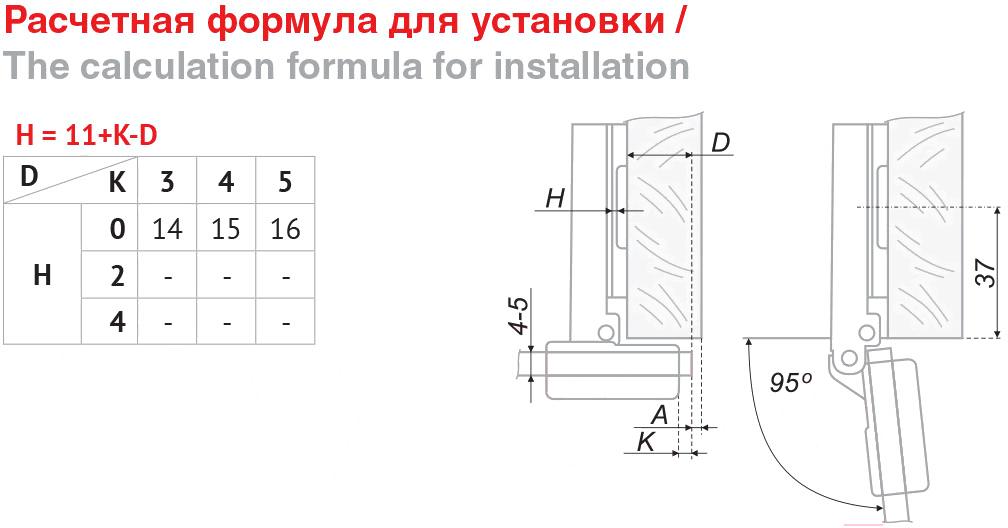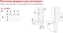 - Угол открывания петли 95 °
