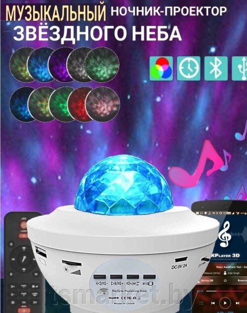 Музыкальный проектор –ночник звездного неба Starry Projector Light (10 световых режимов, 3 уровня яркости, USB