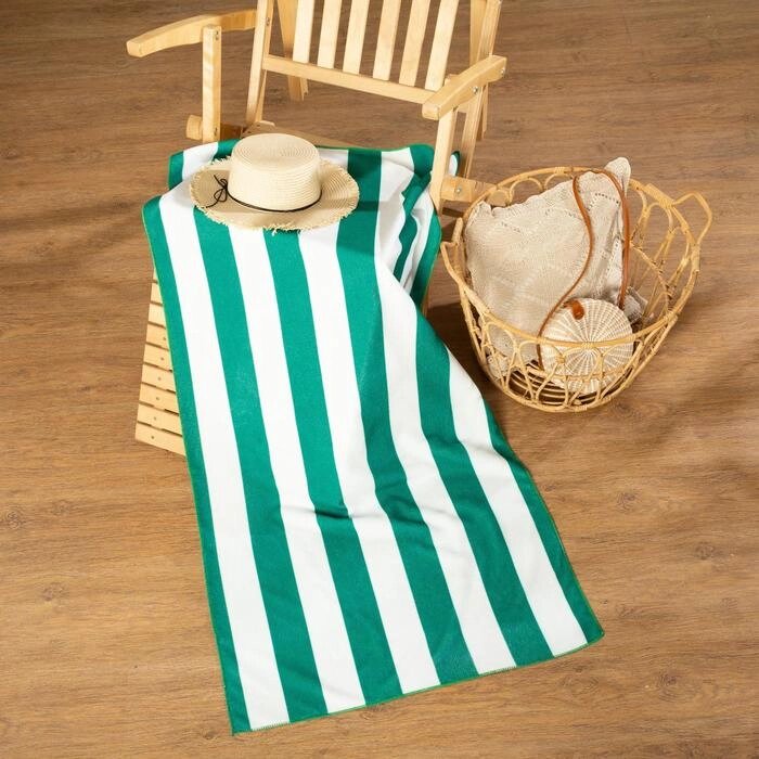 Полотенце пляжное с ручками Этель "Полосы зеленые", 70*140 см,250гр/м2,100%п/э