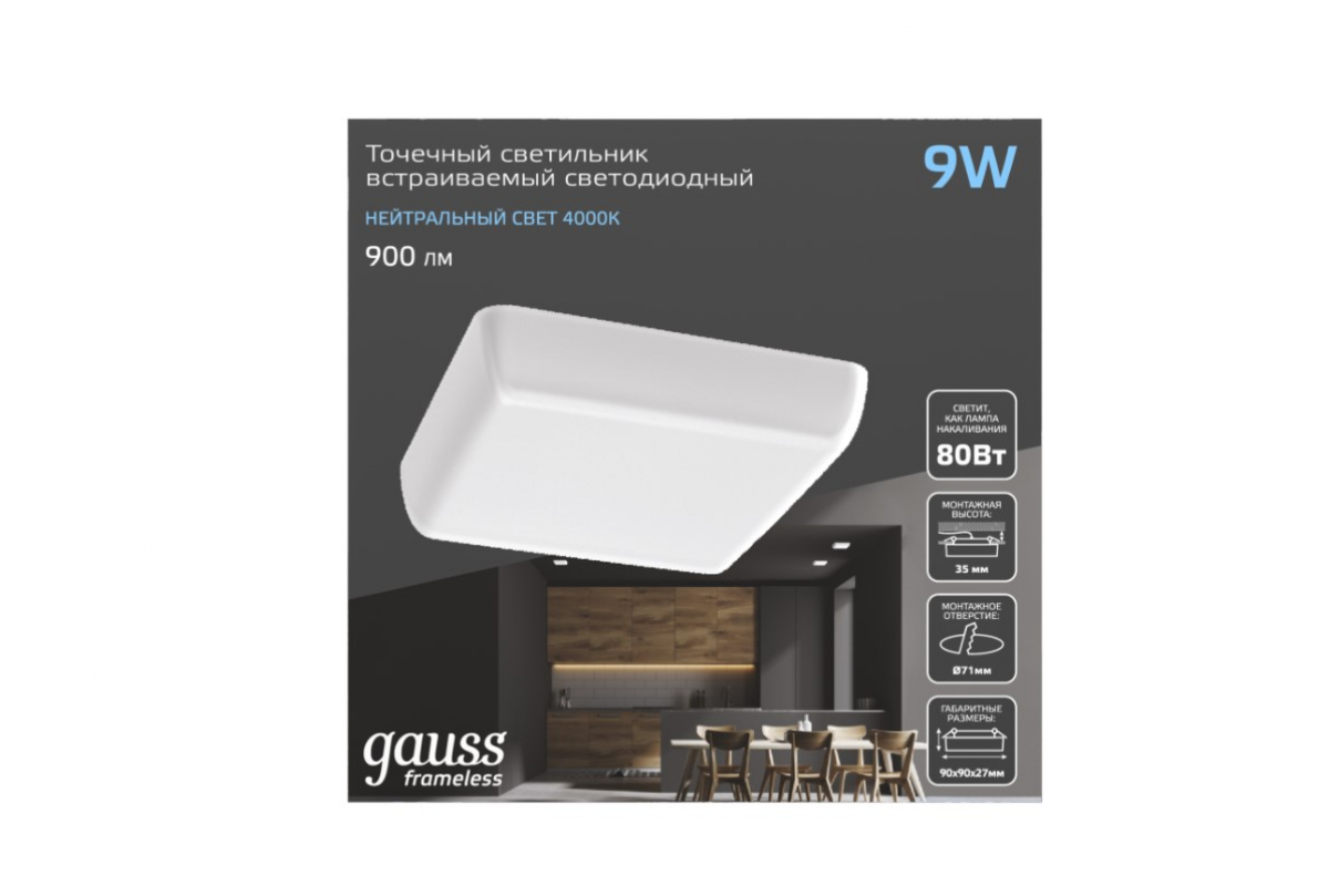 - Мощность светильника, Вт 9