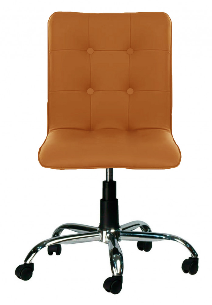Кресло Мальта Хром без подлокотников, с подъёмно-поворотным механизмом, на хромированной базе, разработано для обеспечения идеальных условий работы офисного персонала. Модель кресла Мальта изящная, стильная, подойдет в как в офисный интерьер, так и в домашний. Обивка выполнена из искусственной кожи с небольшими углублениями и декором из блесток. Главные характеристики кресла Мальта хром: