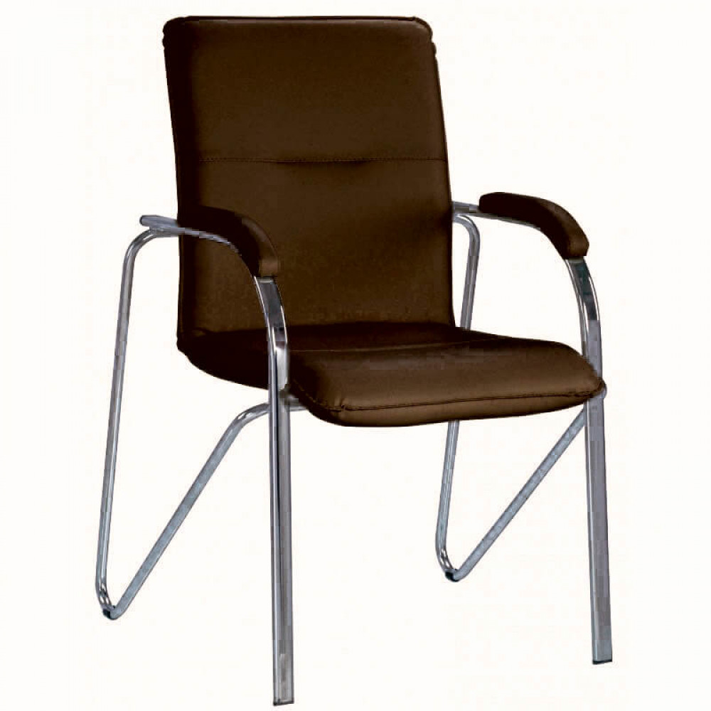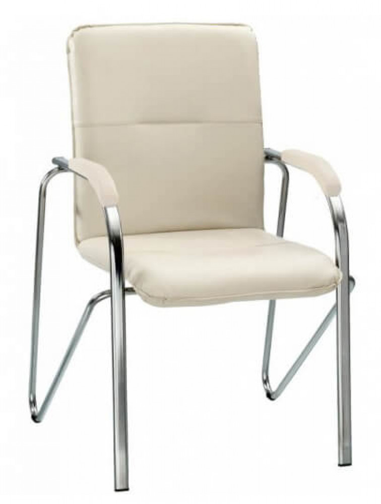 Необычный дизайн использовали производители при создании стула Самба Софт. Передние ножки благодаря изгибам плавно переходят в задние опоры и плавно заканчиваются под сиденьем. Подлокотники мягкие, в тон обивки кресла (либо имеют в верхней части деревянные элементы в модификации Самба Хром). Подлокотники не только функциональны в части защиты от холодной металлической поверхности, но и эстетично смотрятся, и придают изделию пикантность. Металлические ножки придают конструкции основательность и прочность, поэтому использовать стул могут люди с любым весом. Широкое сиденье стула Самба Софт удобно для расположения на нем.