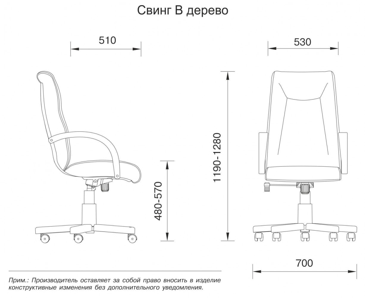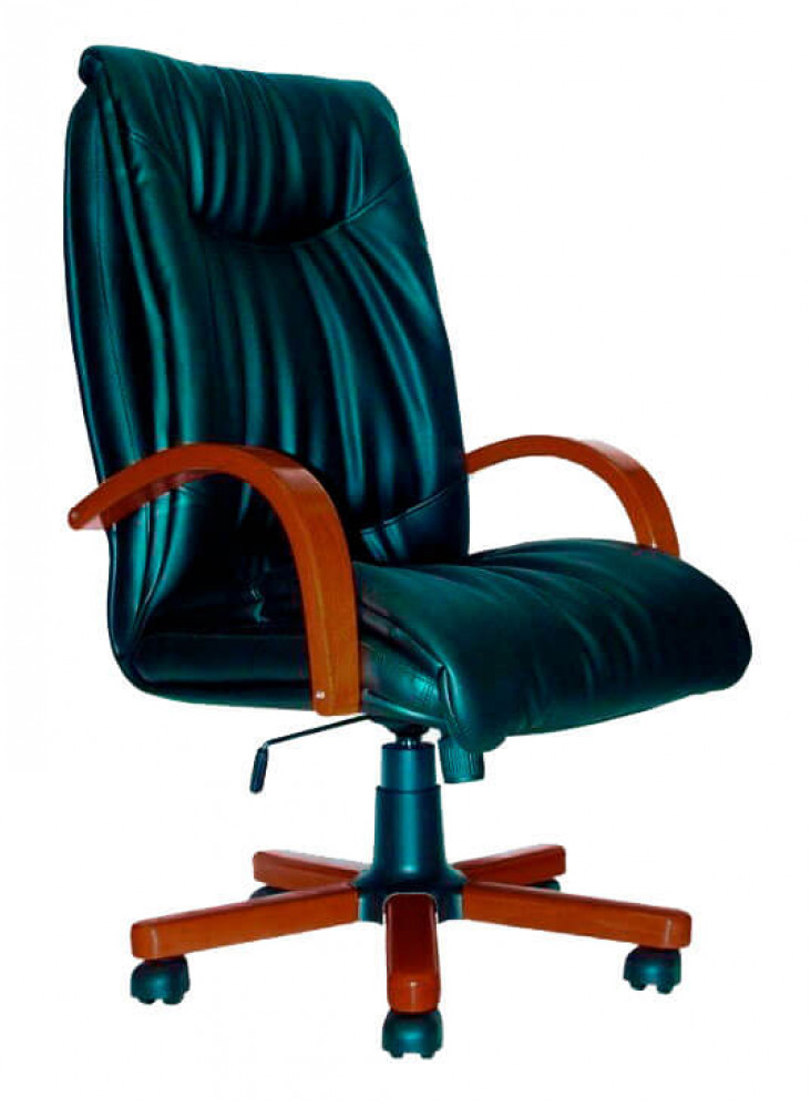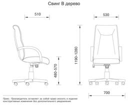 Кресло руководителя Свинг имеет металлическую крестовину с деревянными накладками, а также широкие деревянные подлокотники. Спинка кресла украшена драпировкой из экокожи. И главный плюс кресла Свинг — это механизм качания Tilt.