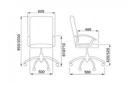 • Габариты: Высота изделия: 970-1060 мм Ширина изделия: 600 мм Глубина изделия: 600 мм Высота спинки: 570 мм Высота сидения: 400-470 мм Ширина сидения: 470 мм Глубина сидения: 480 мм Диаметр базы: 600 мм