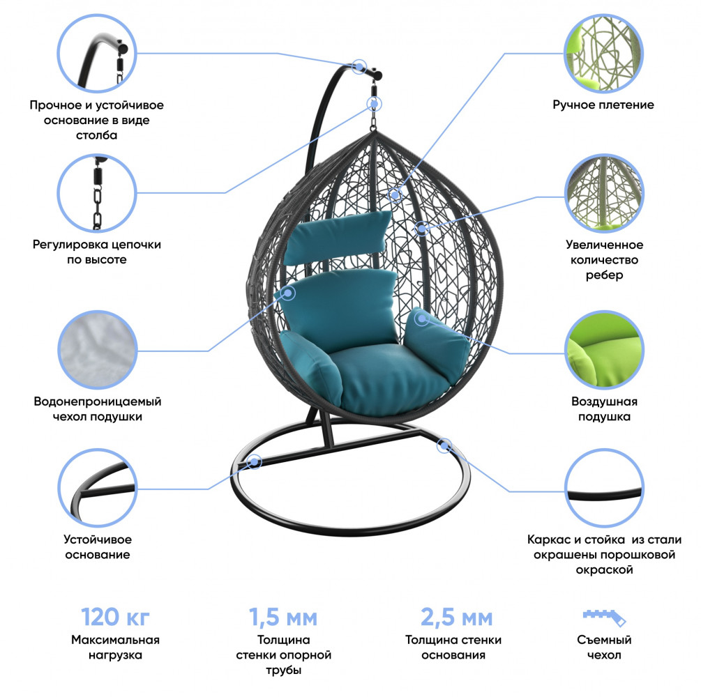 Подвесное кресло Loftyhome Noni 1147 темно-серый