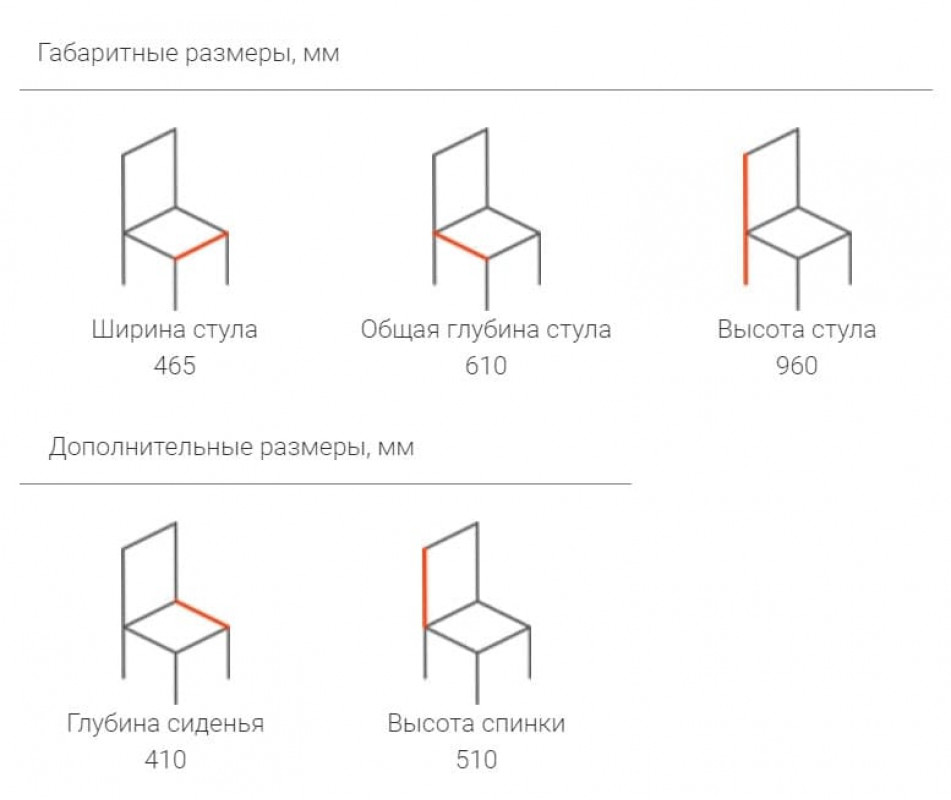 Габаритные размеры деревянного стула Вера: