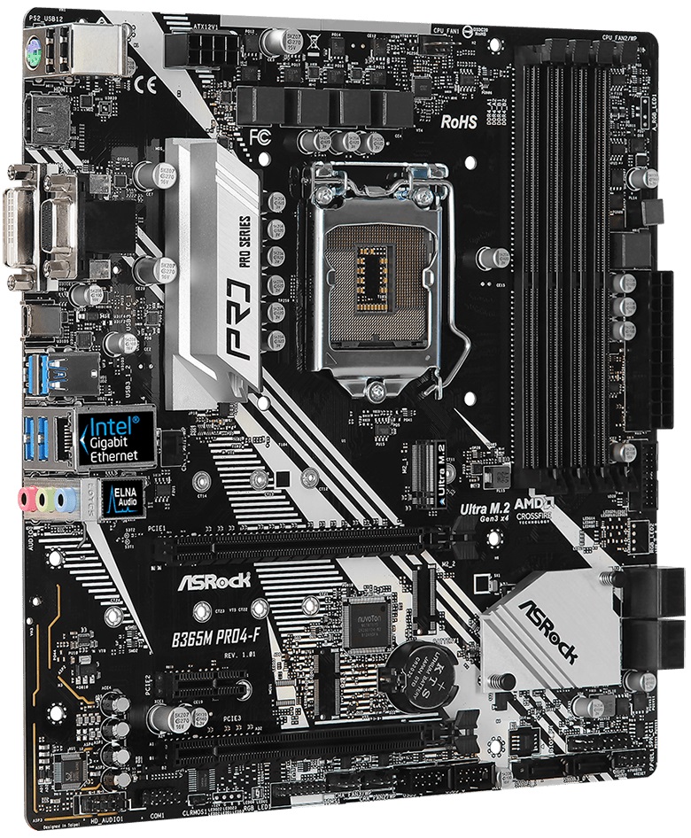 MicroATX, Intel Socket LGA1151 v2, чипсет Intel B365, память - 4 х, DDR4, слоты: 2 - PCIe x16, 1 - PCIe x1, D-sub, DVI, HDMI.