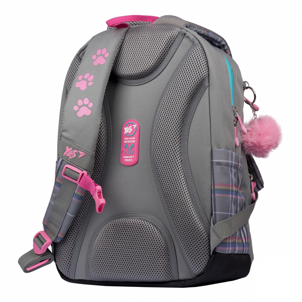 Щільна спинка рюкзака посилена пом'якшуючими накладками, відповідає стандартам і зберігає поставу дитини;