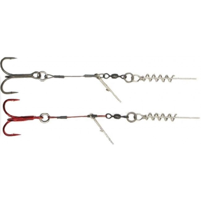 Cпециальная снасточка для использования в тандеме с крупными силиконовыми приманками. Выполнена из прочного многожильного материала c полимерным покрытием. Вооружена мощными двумя острыми тройниками SG Y-Trebles. Предлагается по две штуки в упаковке(стального и красного цвета).артикул - RYM-18595478