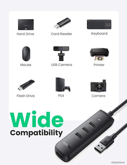 • Все разъемы на адаптере USB-A 3.2 Gen1 (5 Гбит/с)