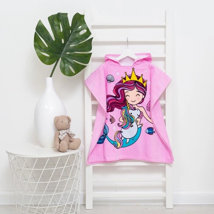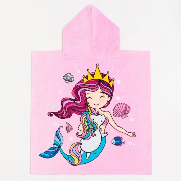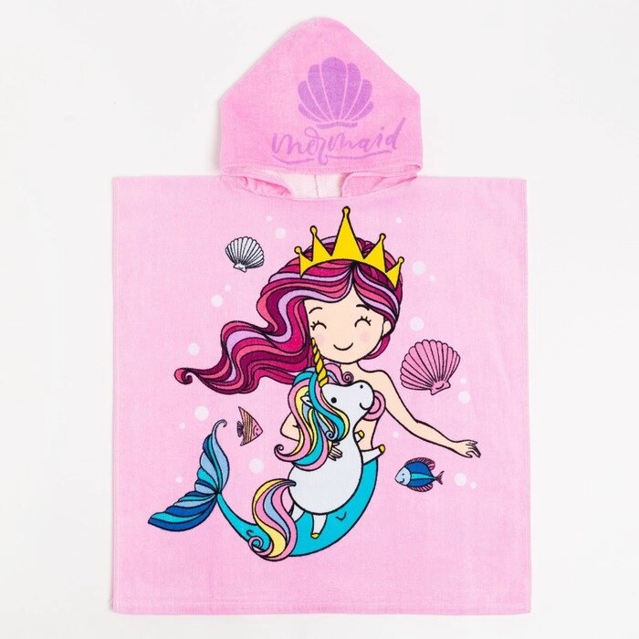 Полотенце-пончо детское махровое Крошка Я "Русалочка" 60х120см, 100% хлопок, 300гр/м2