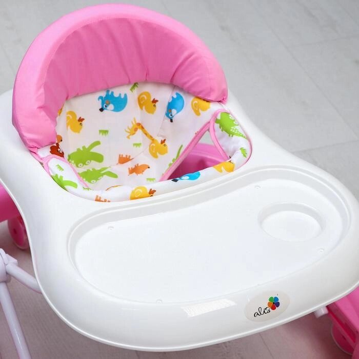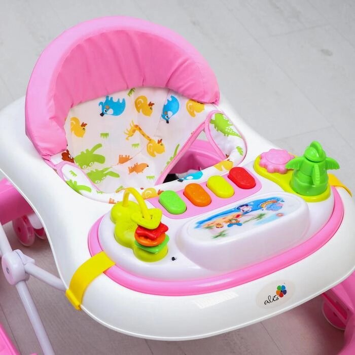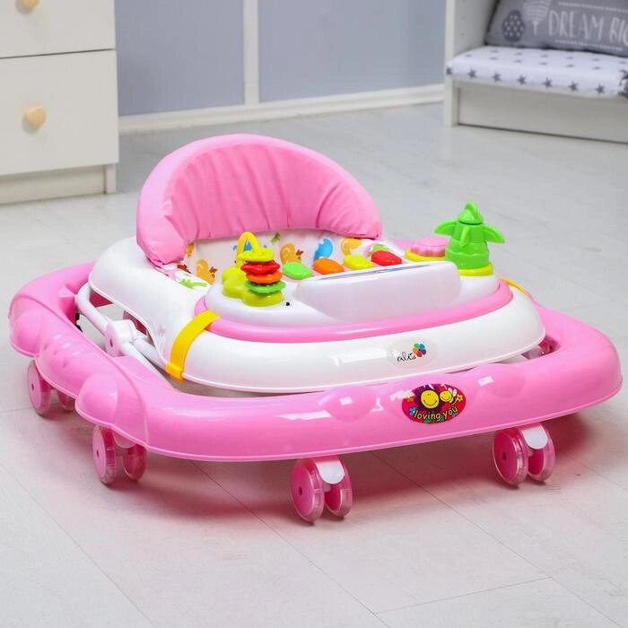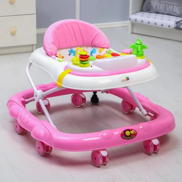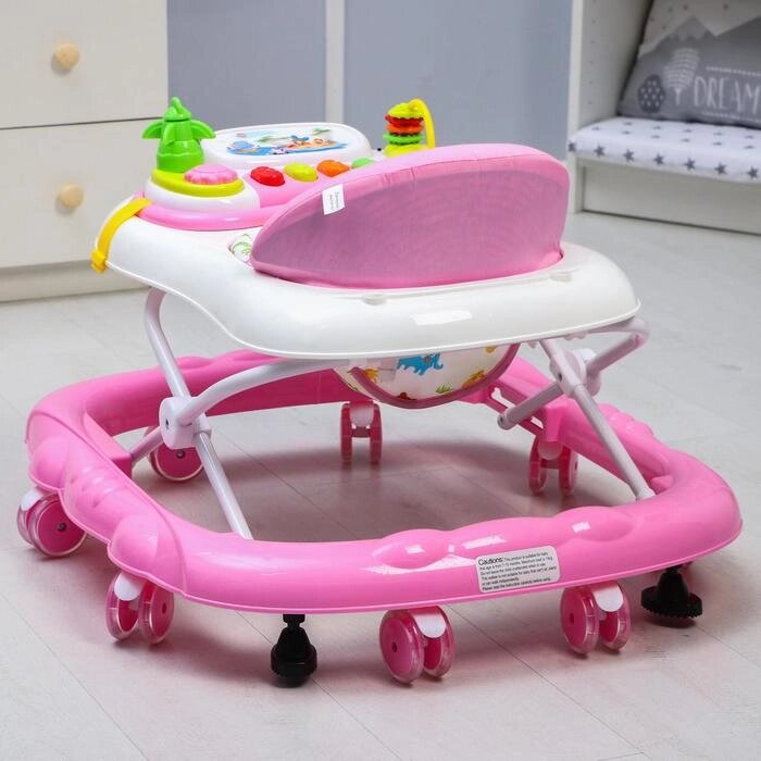 Ходунки "Улыбка", 8 силик. колес, съемная панель, муз., свет, игрушки, розовый