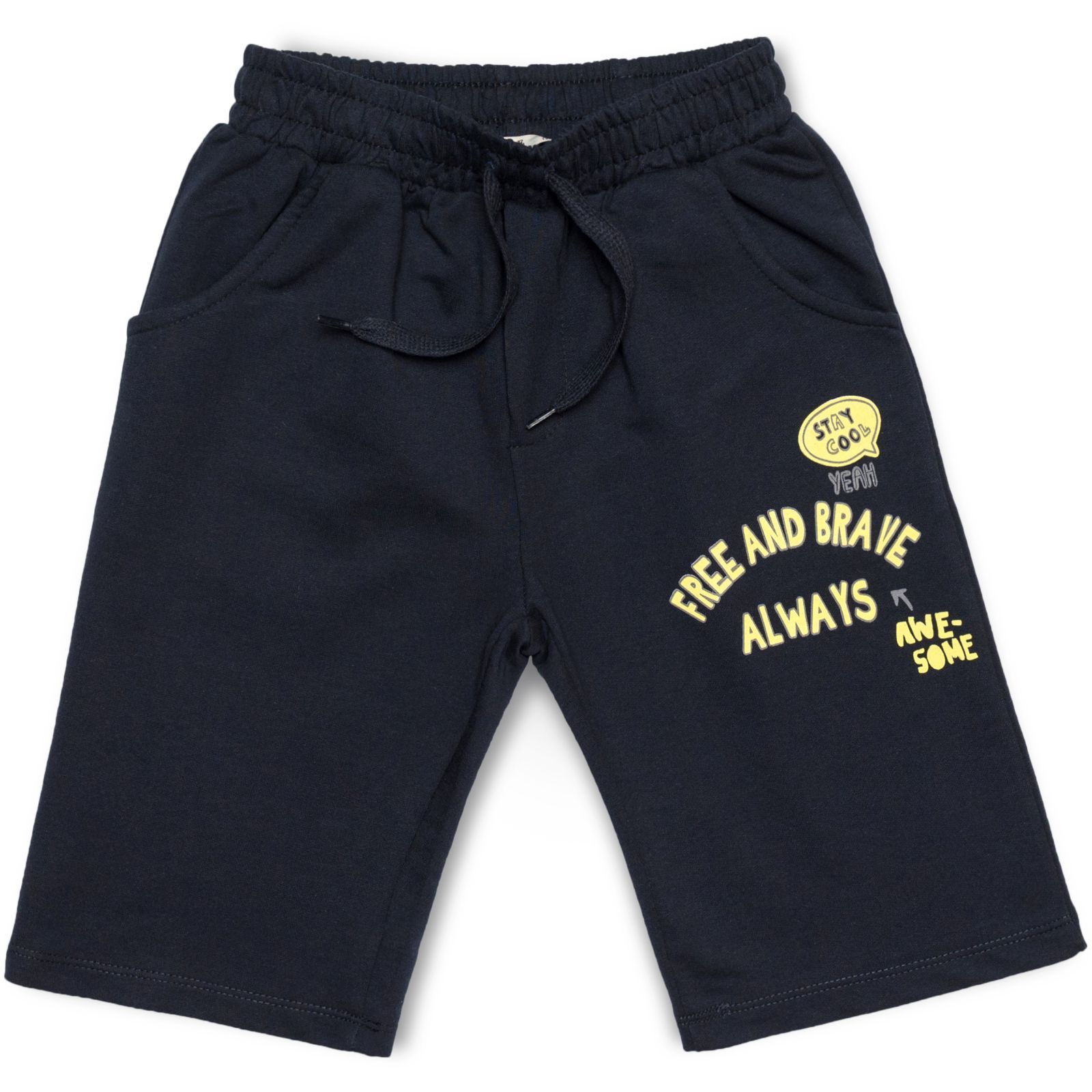Чудовий, яскравий літній комплект із якісного, дихаючого, бавовняного турецького трикотажу: яскраво-жовта футболка та темно-сині шорти-бермуди.