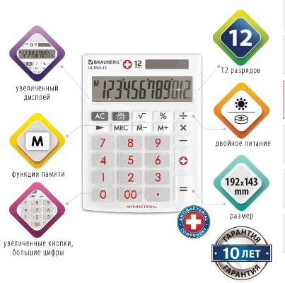 Функции памяти[M+] - сохранение в памяти со знаком [ + ], [M-] - сохранение в памяти со знаком [ - ], [МRC] - вывод содержимого памяти на дисплей / очистка содержимого памяти