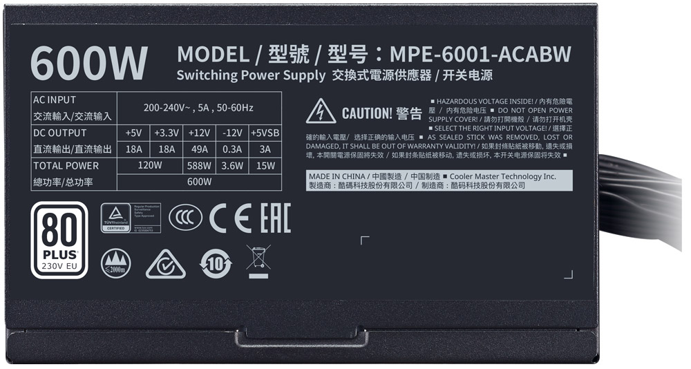 600 Вт, PFC - активный, 80 PLUS - бронзовый, 8-pin PCI-E - 4, система охлаждения 1 вентилятор.