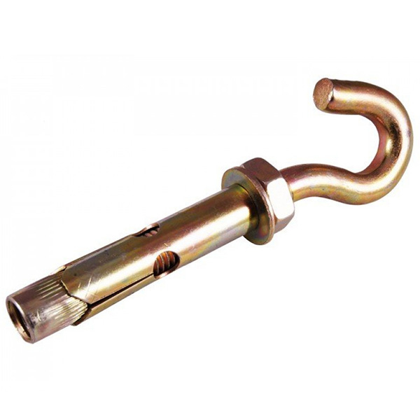 Используется для крепления тяжеловесных конструкций к полнотелому бетону, природному строительному камню, полнотелому кирпичу. Может применяться для крепления к тонким бетонным перегородкам. Изготовлен из стали, поверхность оцинкована и пассирована. Болт с резьбой и конусообразной гайкой, цилиндрической подвижной муфтой с продольными прорезями и шайбой. Головка имеет форму кольца. При завинчивании болта конусообразная гайка втягивается в муфту и происходит распирание. Причем крепление идет вдоль всей муфты за счет ее дополнительной деформации у основания анкера.
