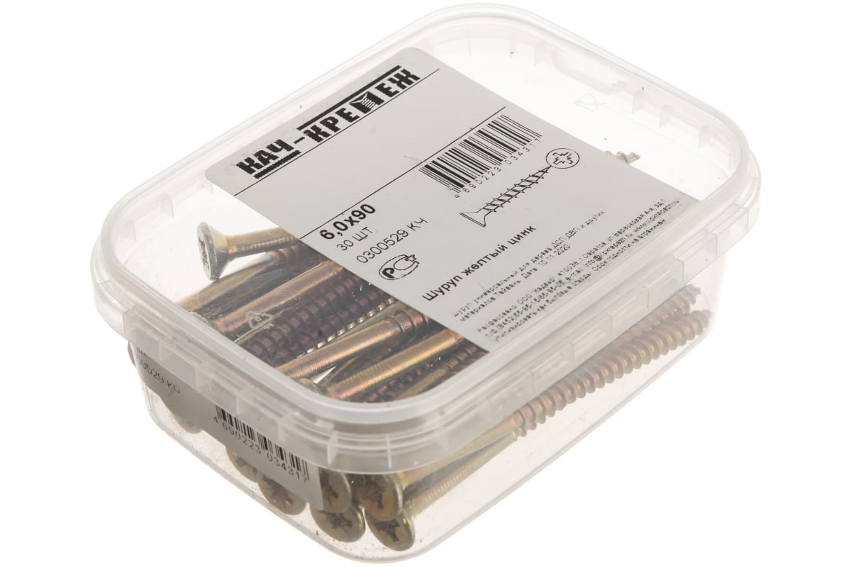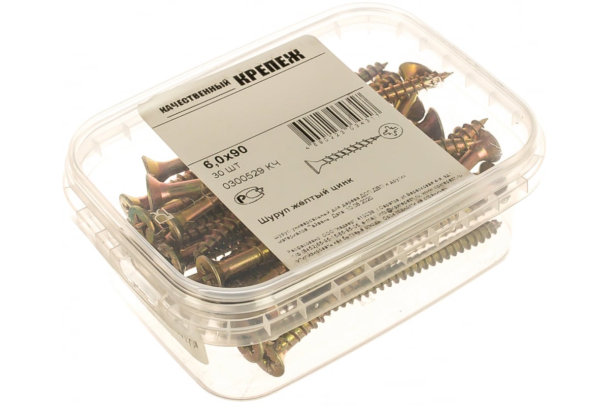 Шуруп Качественный КРЕПЕЖ желтый цинк 6,0x90, 30 шт. 0300529 КЧ