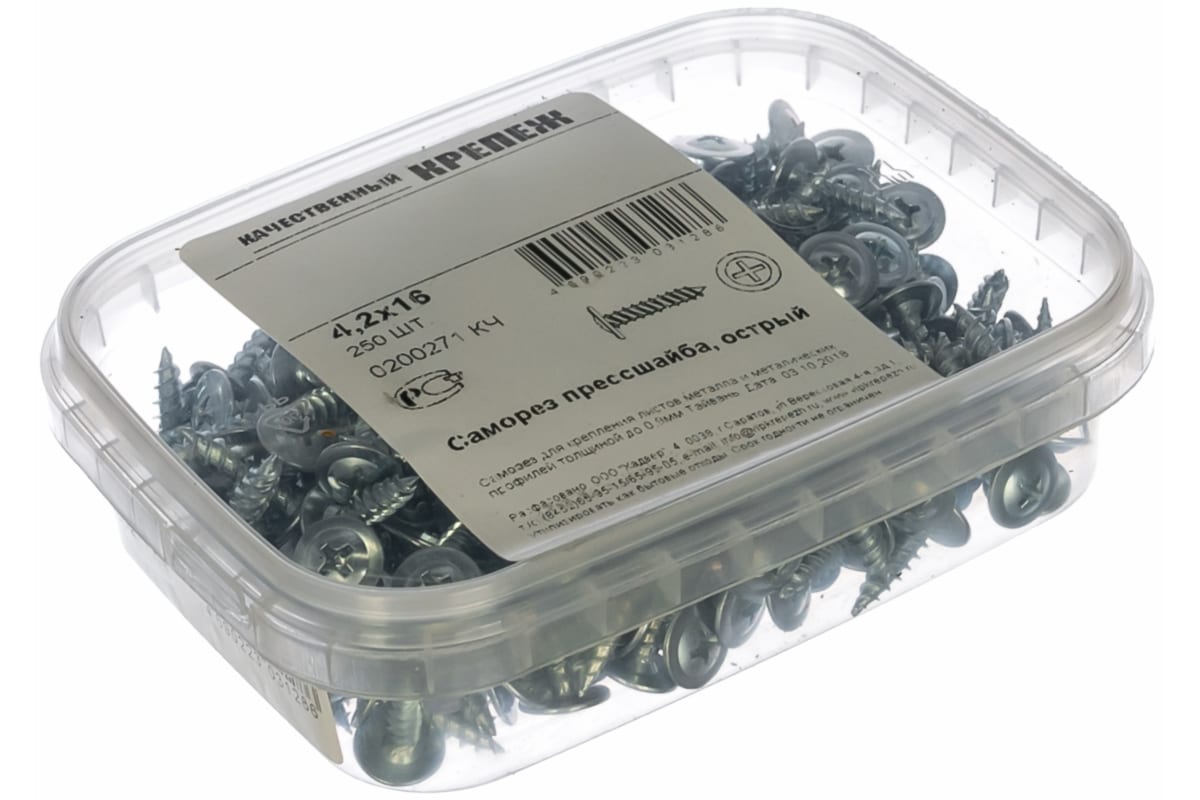 Саморез с прессшайбой Качественный Крепеж 4,2х16 острый 250 шт 0200271 КЧ