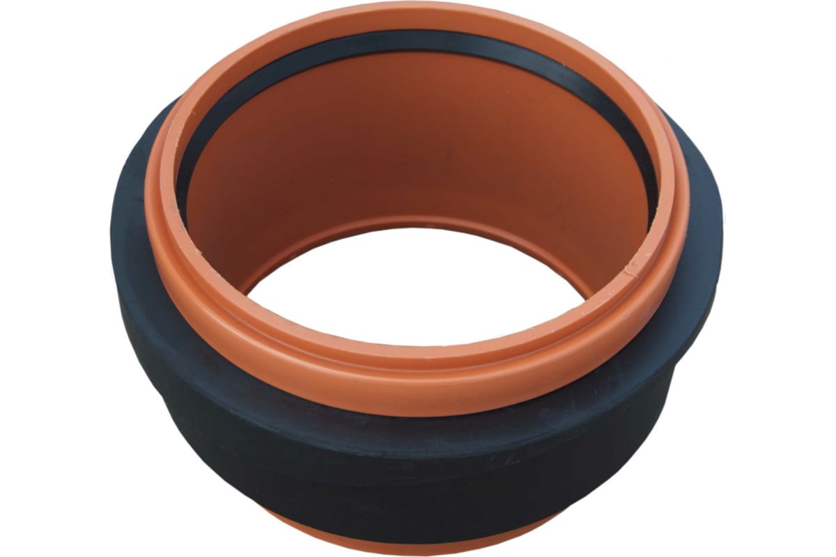 Широкое резиновое уплотнение позволяет добиться герметичности соединения, а полипропиленовая муфта жесткости соединения.