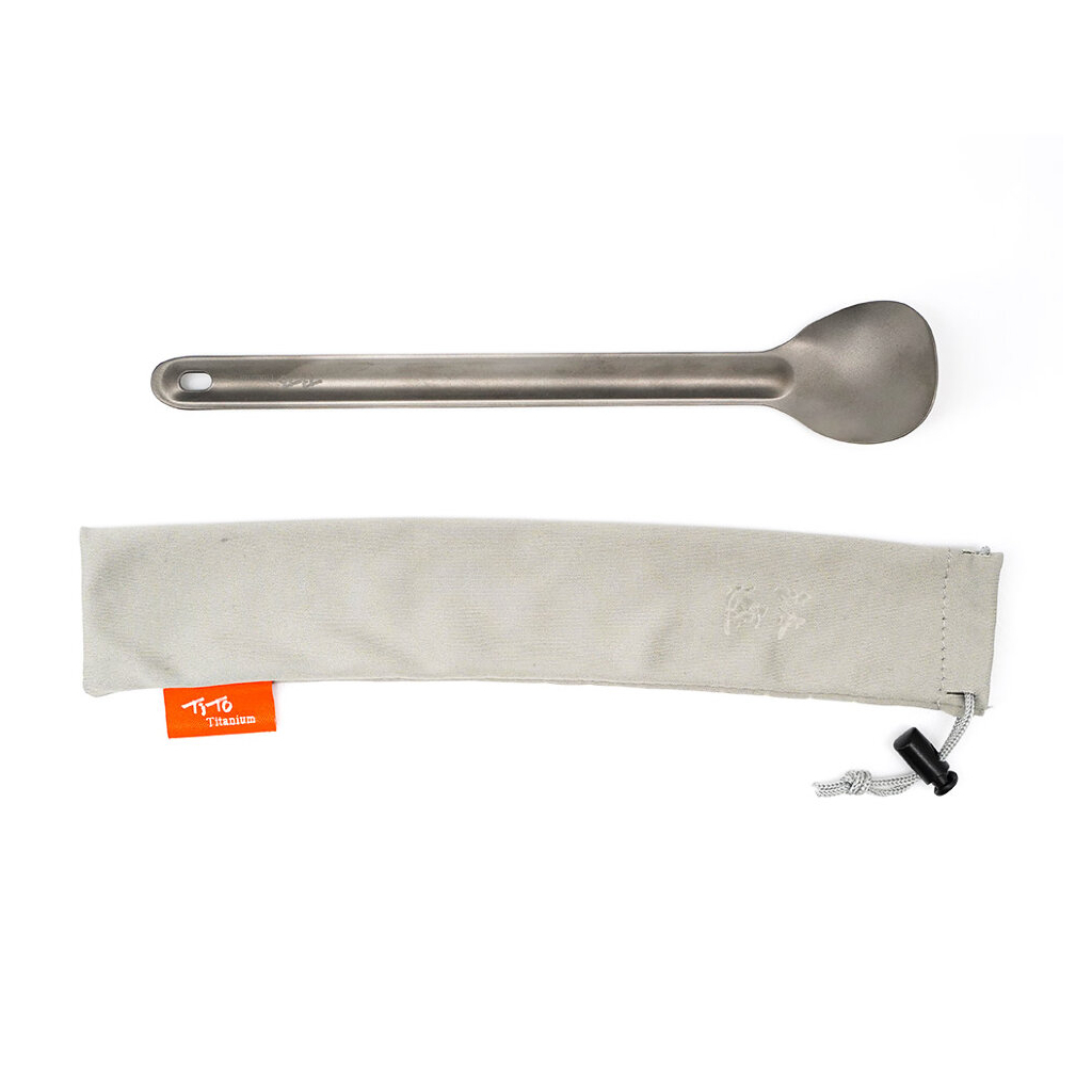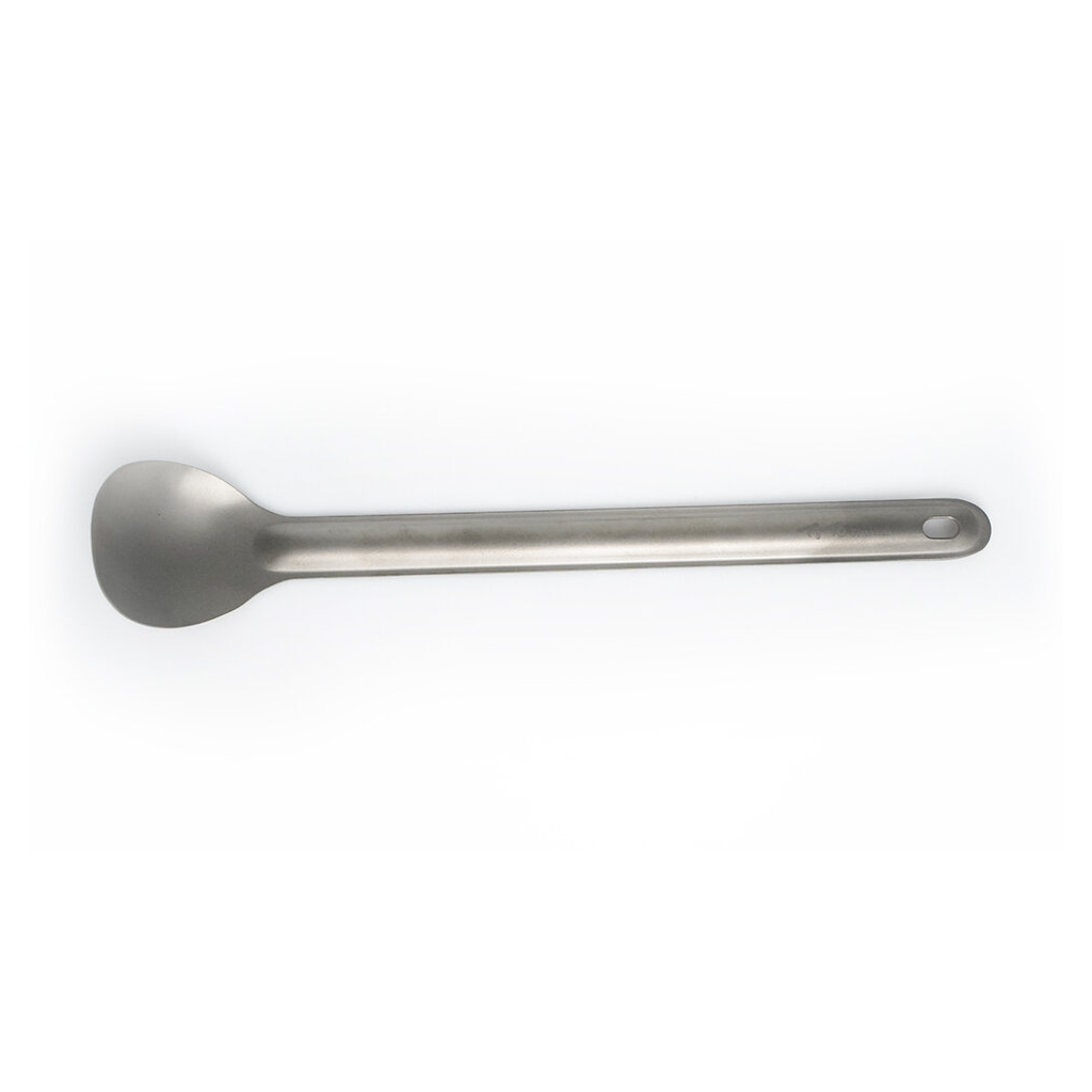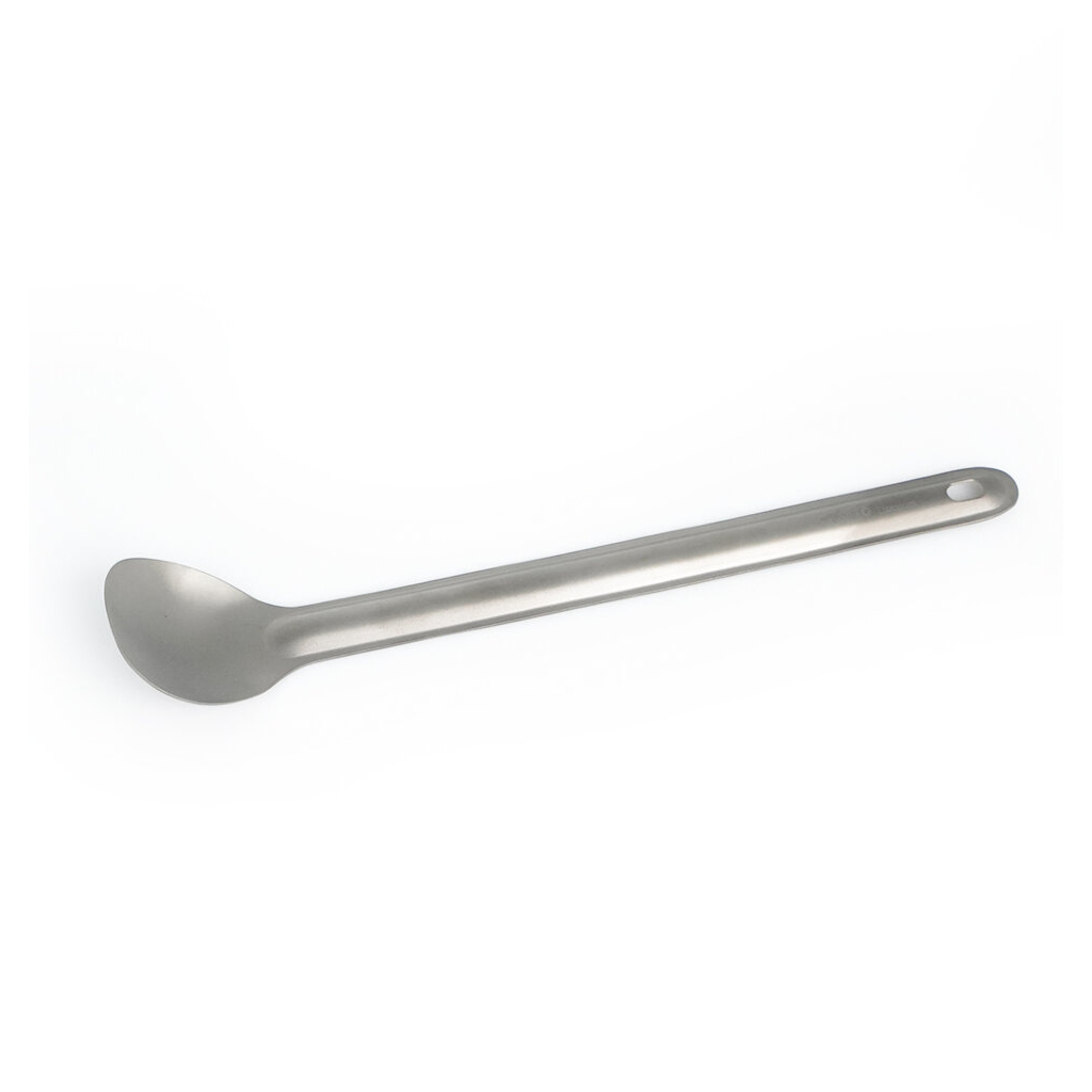 Ложка з довгою ручкою, виготовлена з міцного і якісного титану. Це зручний в застосуванні предмет, який буде служити вам під час трапези на свіжому повітрі. Такий ложкою комфортно зачерпнути їжу, помішувати вміст тарілки або каструлі.