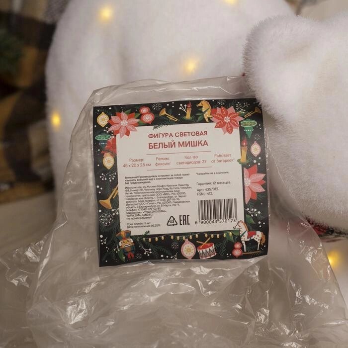 Фигура световая "Белый мишка", 37 LED, 45х20х25 см, фиксинг, от батар. (не в компл)