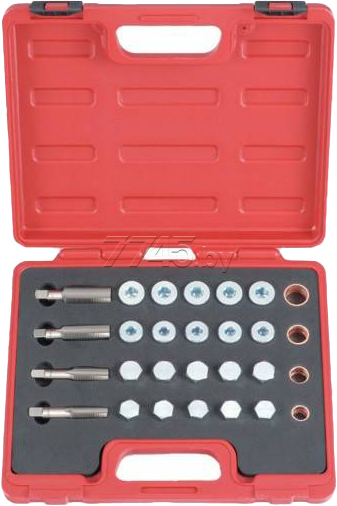 Набор для восстановления резьбы сливных отверстий FORCE 64 предметов (964G1) используется для восстановления резьбы сливных отверстий поддона в автомобилях.
